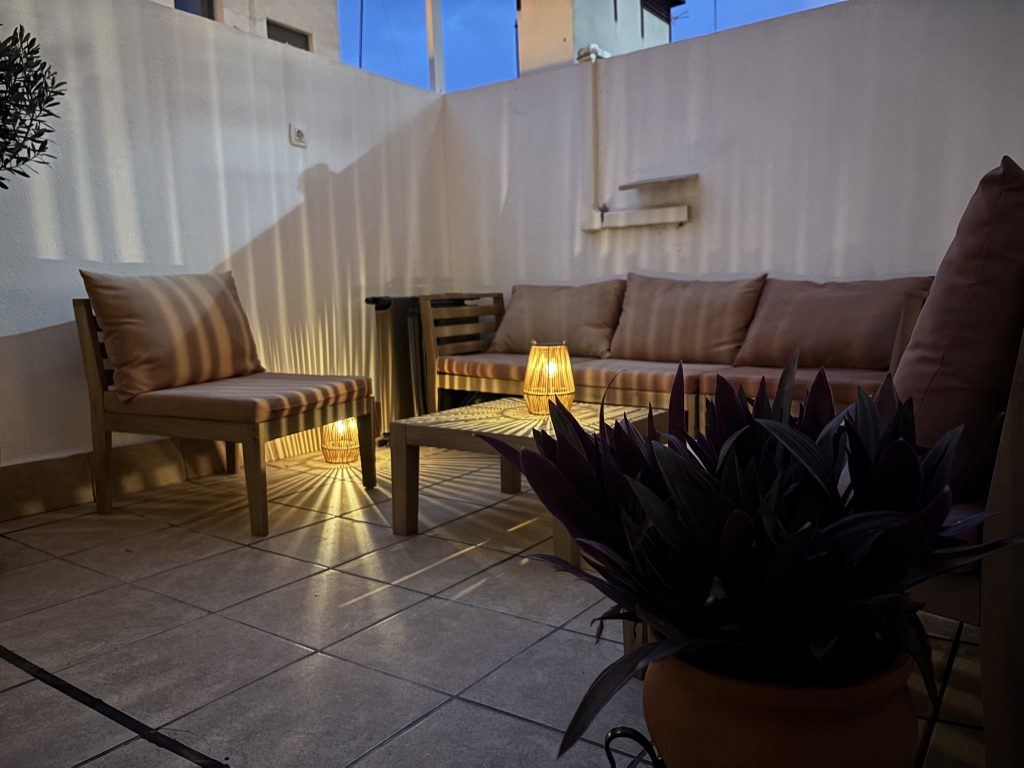 Your central ease: 1-bedroom apartment with AC, Wi-Fi, king bed, and your own 17 m² private terrace with lounge & dining area – perfect for breakfast, an evening drink or working outdoors.